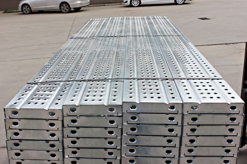 在施工場地,我們經??吹揭恍┙饘偬?,也就是鋼跳板,俗稱腳手架板。 施工人員在上面行走及搬運材料用的輔助器材。這些鋼跳板上有很多孔。 這些孔它的作用是很廣泛的 A. 可以排水,雨天施工不積水。 B. 冬天施工防滑,安全得到保障?! . 防結砂,有效防止堆積砂子。鋼跳板在船廠噴砂房很受歡迎。 D. 鋼跳板之間的鏈接。鋼筋或鐵絲固定,方便牢固。 在使用鋼跳板施工時,搭建腳手架的鋼管可適當減少